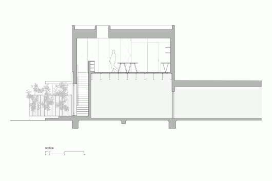 From the architect. This project is a small urban infill renovation located in Clarksville, the only mixed use neighborhood in Old West Austin, Texas. The structure serves as the offices for Baldridge Architects, a small architecture studio in Austin. The 1450 square foot renovation sits in an unassuming location amidst a parking lot along the principal two-lane commercial street the runs through Clarksville. Originally a concrete masonry unit warehouse glommed on to the neglected 1960s building of a television repair business, the reinvented structure serves not only as the firm’s home but also as a redirection from the “soft modern” instincts that prevail in Austin’s residential neighborhoods, and from the trendy surfaces that characterize its restaurants and commercial establishments.
