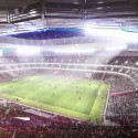 The structure is intended to reference Islamic architecture. Both the interior and exterior will be clad in translucent triangular panels whose color and patterns will shift throughout the day, depending on the position of the sun and influence of artificial illumination which will reflect the events happening from within the stadium.
