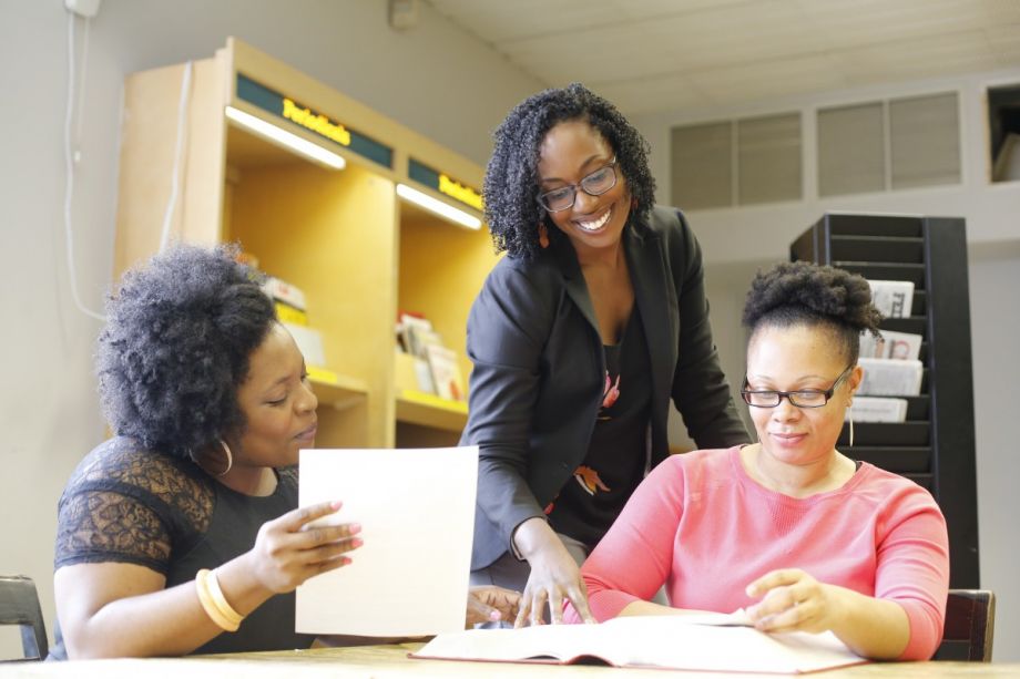 Staff from the Brooklyn Public Library work with a business owner. (Credit: New York City Department of Small Business Services)