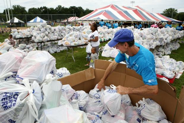 The event was scheduled to last about four hours, but participants lined up over an hour before the start time. Convoy of Hope holds similar events throughout the country, and organizers sometimes see people camping out the night before opening.